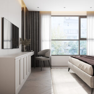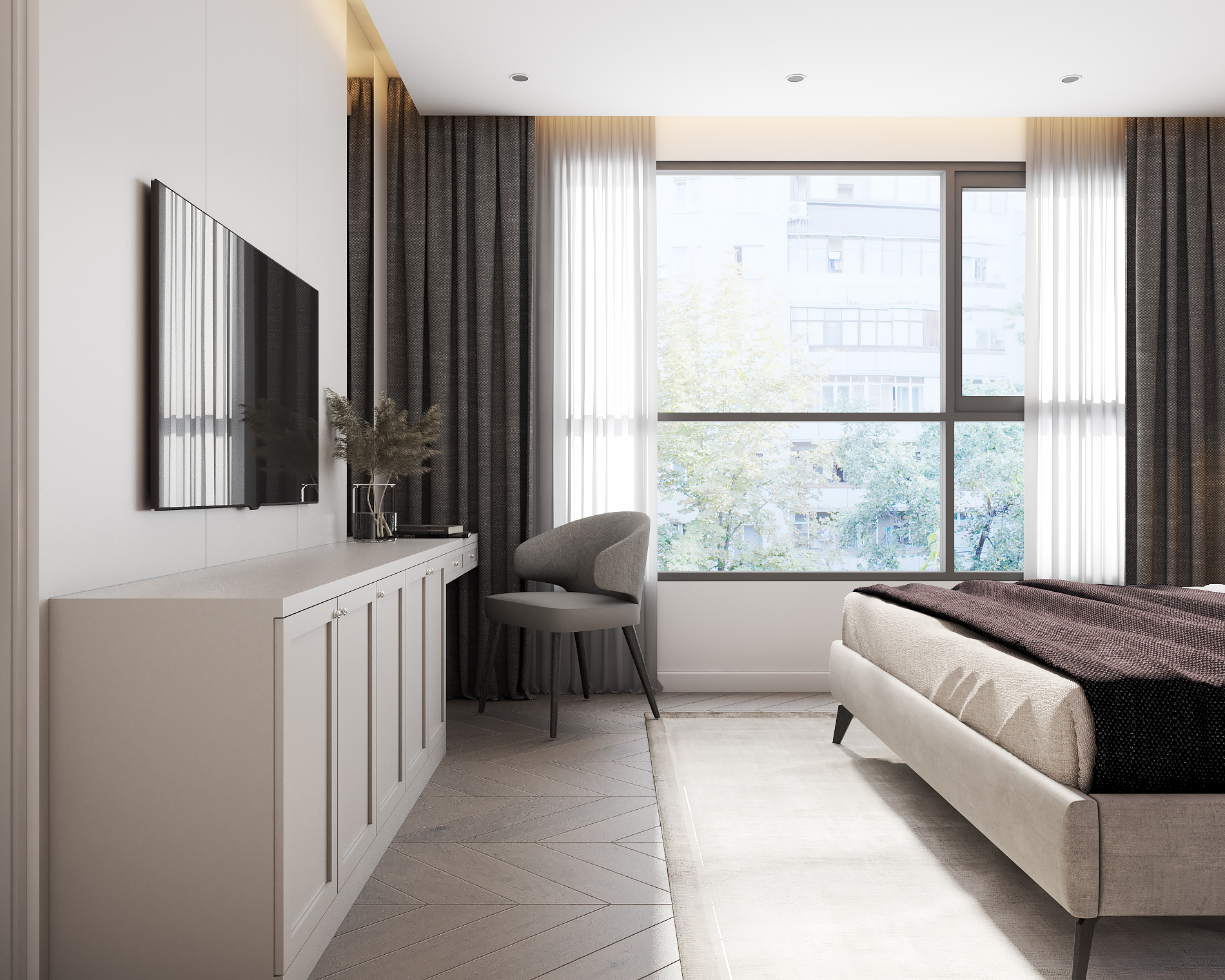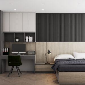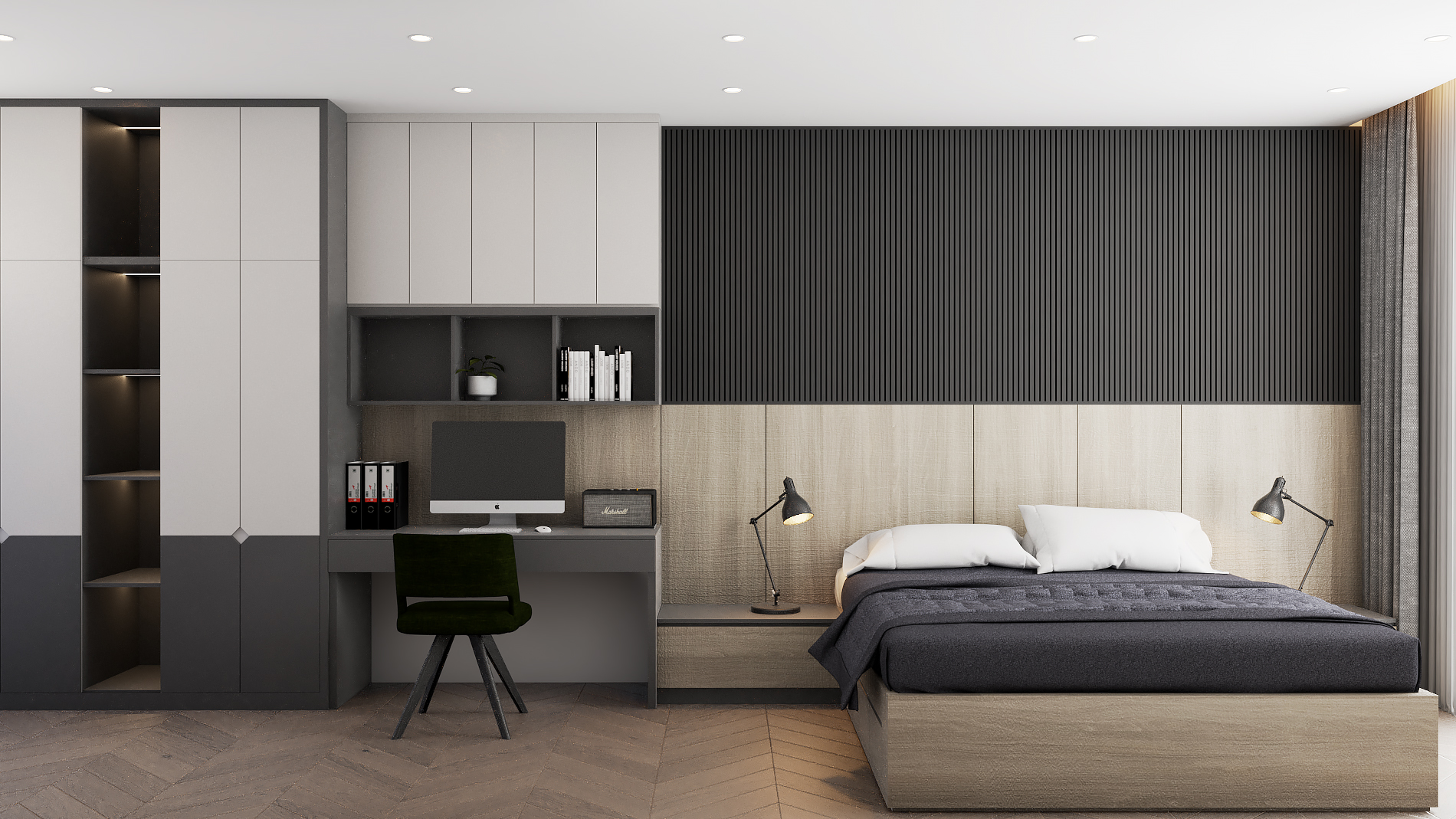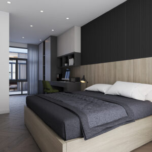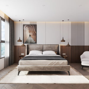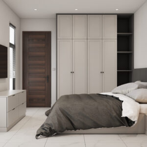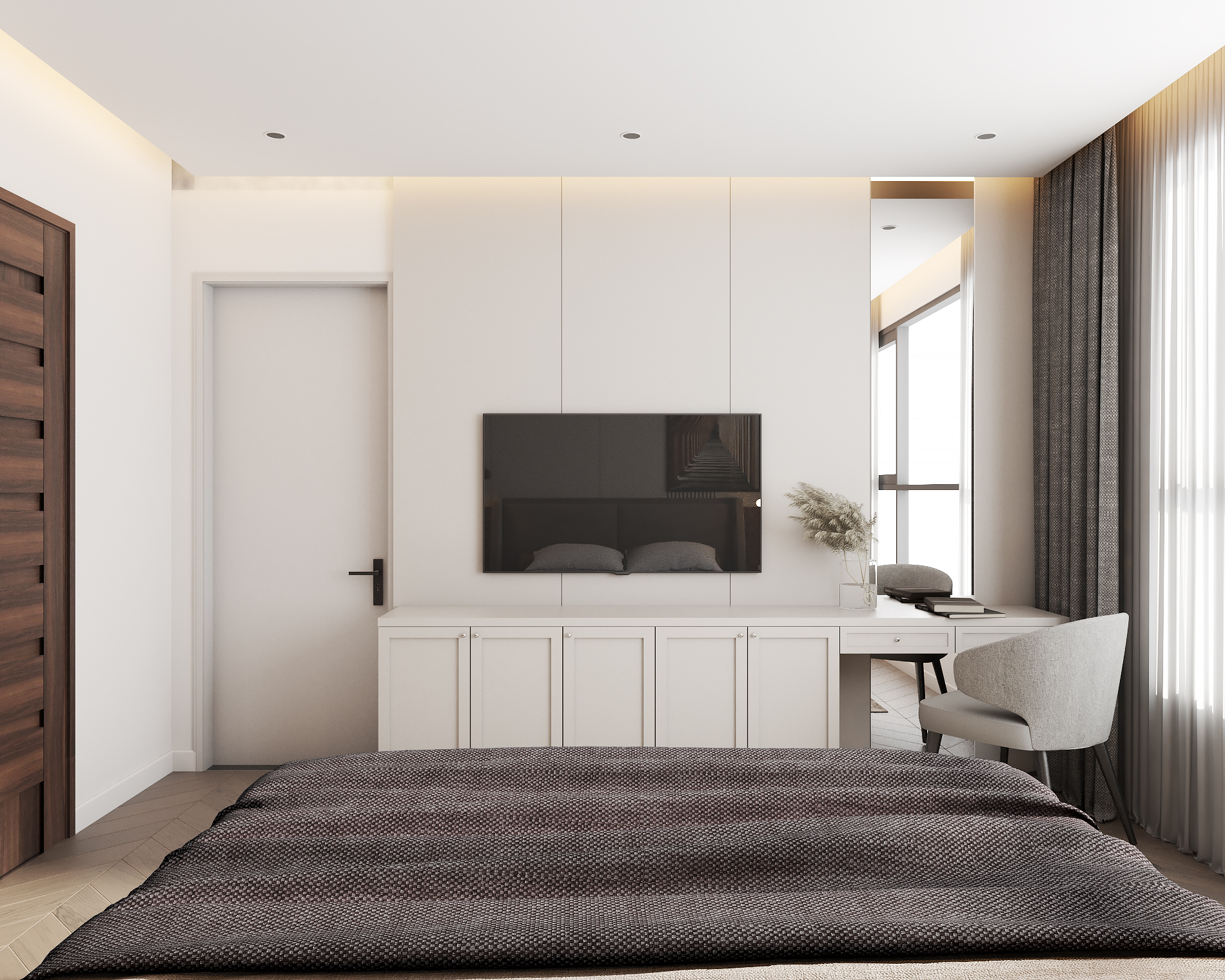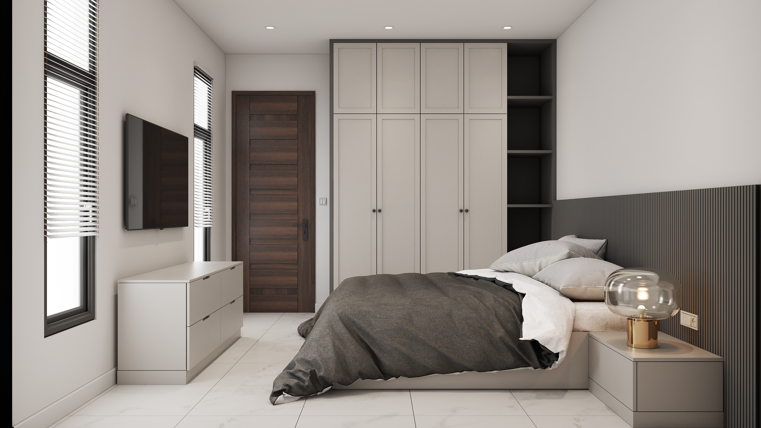 Không gian ấy không chỉ đáp ứng đầy đủ công năng mà còn tạo nên một bầu không khí ấm cúng, an nhiên – nơi mọi thành viên trong gia đình có thể thư giãn, nghỉ ngơi và vun đắp hạnh phúc. Ánh sáng tự nhiên được khai thác tối đa, hòa quyện cùng những mảng màu trung tính và chất liệu gỗ nhẹ nhàng, tạo nên sự cân bằng tinh tế giữa yếu tố thẩm mỹ và cảm giác dễ chịu, thoải mái.