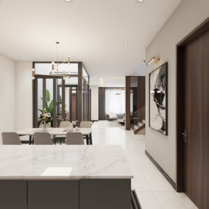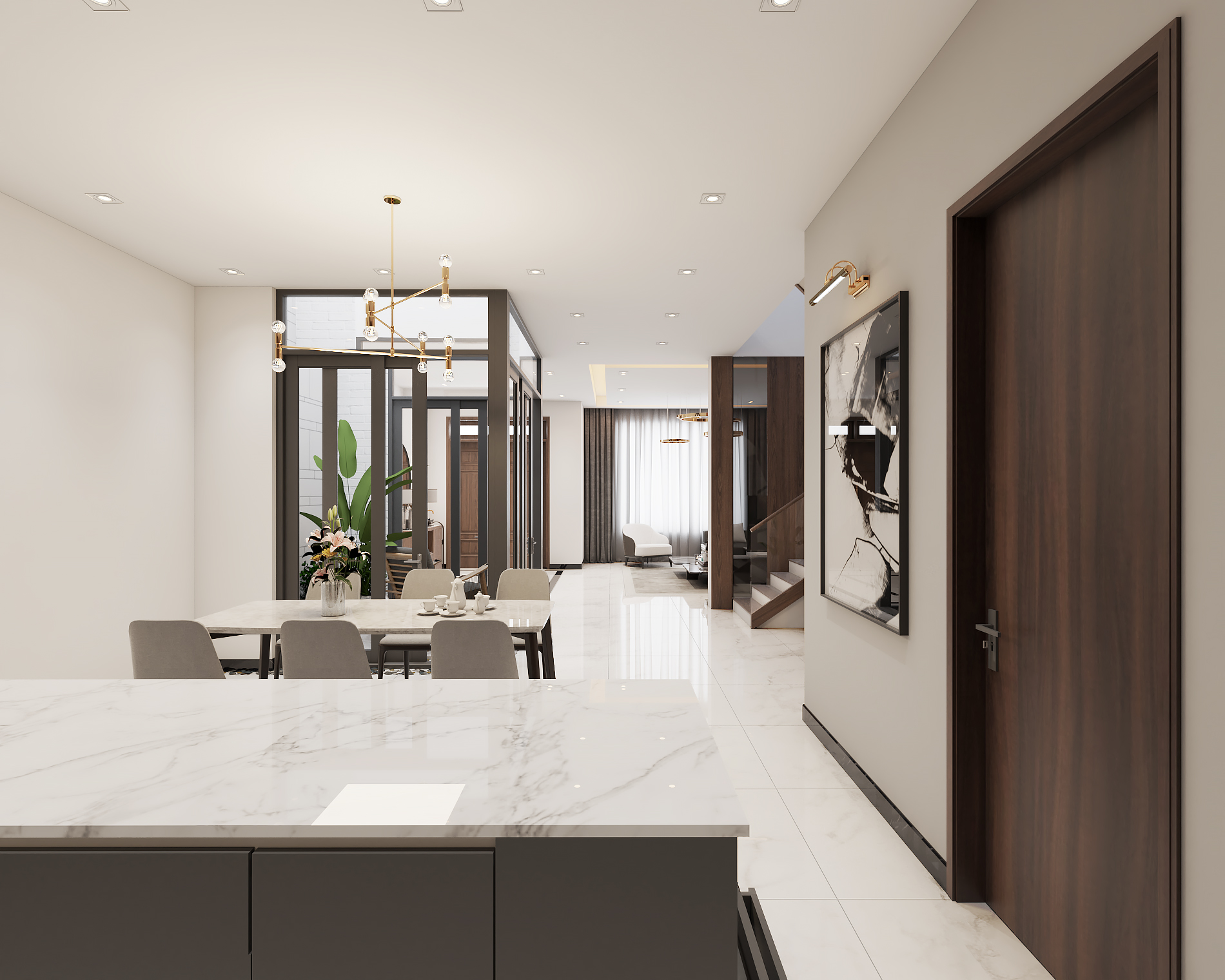 Ngôi nhà được định hình theo phong cách hiện đại tối giản – một tinh thần thiết kế đơn giản nhưng không hề đơn điệu, nhẹ nhàng nhưng vẫn đủ ấm áp để chở che và chào đón những bước chân trở về. Mỗi không gian đều được bố trí tỉ mỉ, cân đối, với những đường nét thanh thoát và tinh tế, mang đến cảm giác thông thoáng, rộng rãi mà gần gũi. Các chi tiết nội thất được lựa chọn cẩn thận, từ vật liệu đến màu sắc, đều hướng đến sự hài hòa và cảm xúc nhẹ nhàng, tạo nên một tổng thể vừa thanh lịch vừa mộc mạc, đủ để giữ lấy hơi thở đời sống hằng ngày nhưng vẫn toát lên vẻ đẹp hiện đại, tinh tế.