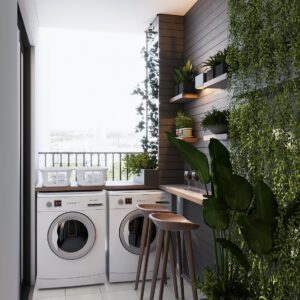 Từng chi tiết trong căn hộ đều được cân nhắc tỉ mỉ, từ cách bố trí nội thất đến lựa chọn vật liệu, nhằm tạo ra một tổng thể hài hòa và cân bằng. Màu xanh của cây cỏ không chỉ góp phần làm dịu mắt, mà còn kết nối không gian sống với thiên nhiên bên ngoài, mang đến cảm giác thư thái, nhẹ nhàng mỗi khi gia chủ bước vào. Sự giao thoa giữa những gam màu trung tính trầm ấm và sắc xanh tươi mới tạo nên một nét đẹp tinh tế, dịu dàng nhưng không kém phần sống động, giúp không gian trở nên sinh động và gần gũi hơn bao giờ hết.