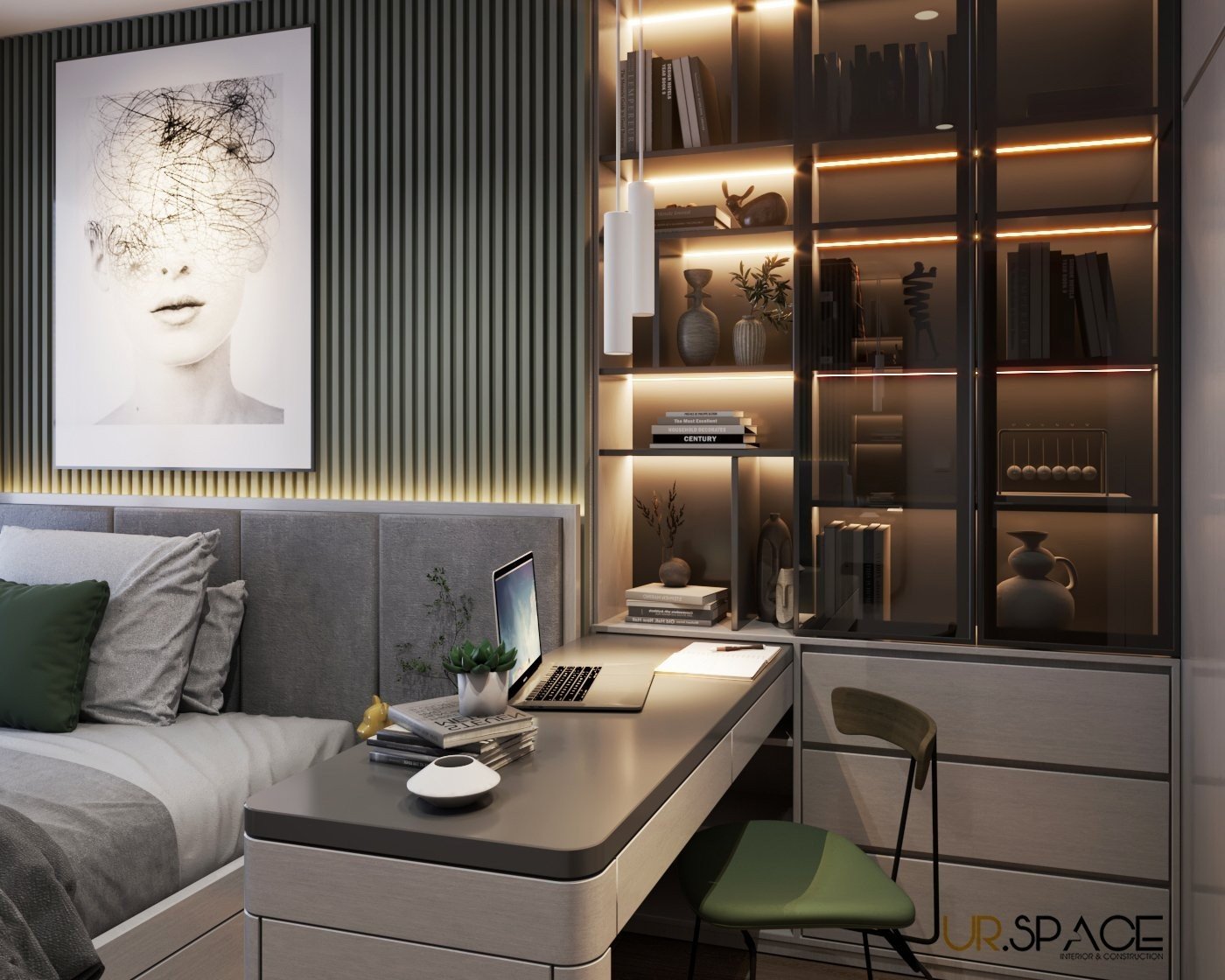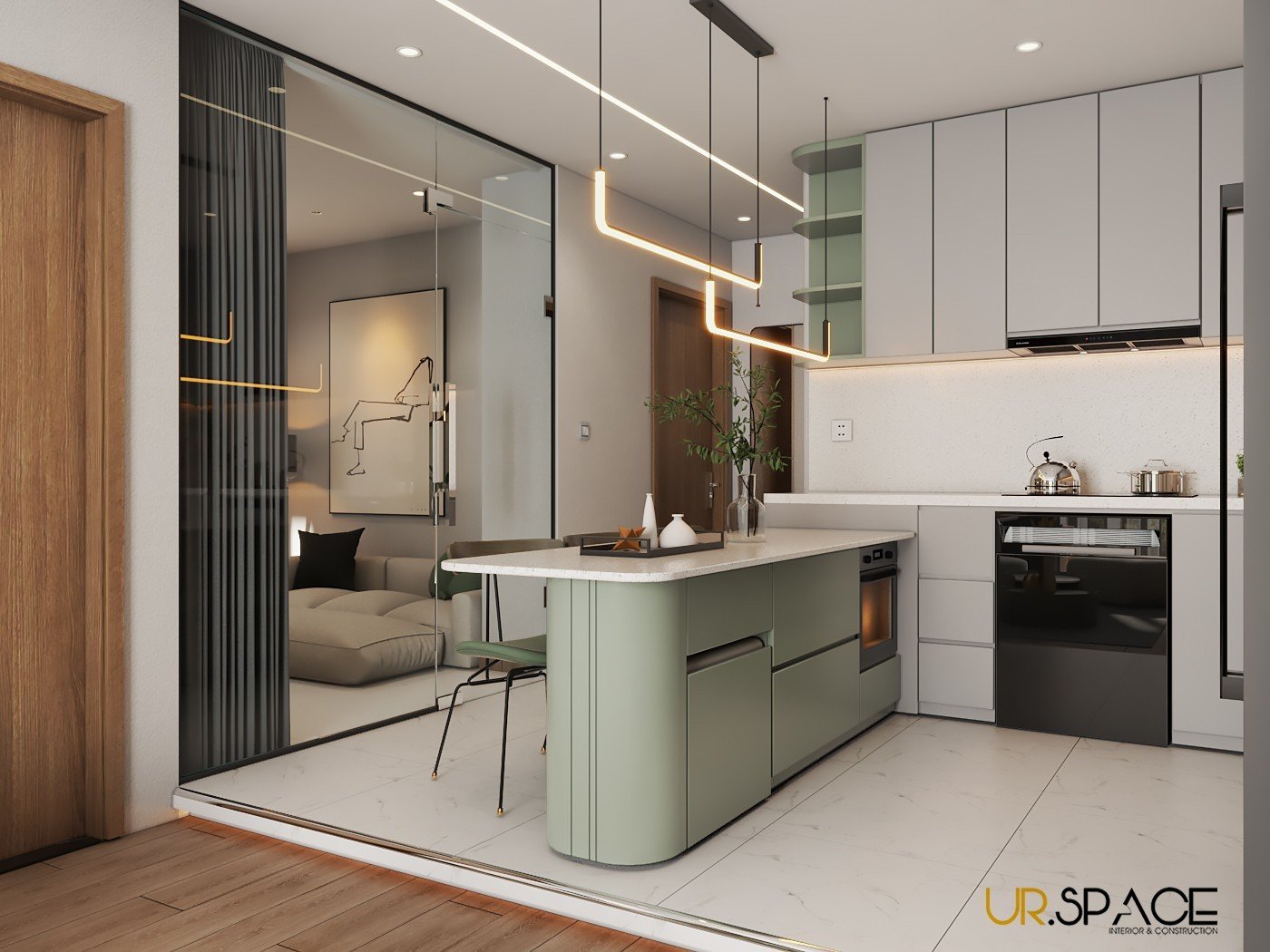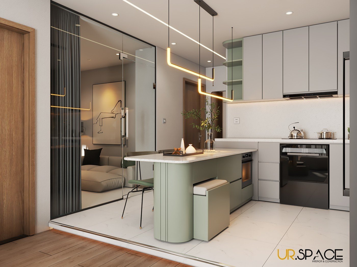 Với sự kết hợp hài hòa giữa phong cách hiện đại, tone màu trung tính nhẹ nhàng cùng sắc xanh thiên nhiên, công trình không chỉ là tổ ấm mà còn là tác phẩm nghệ thuật sống động, thể hiện trọn vẹn tâm huyết và sự sáng tạo của đội ngũ UR.SPACE – những người luôn đặt sự thấu hiểu và tận tâm lên hàng đầu trong mỗi dự án.