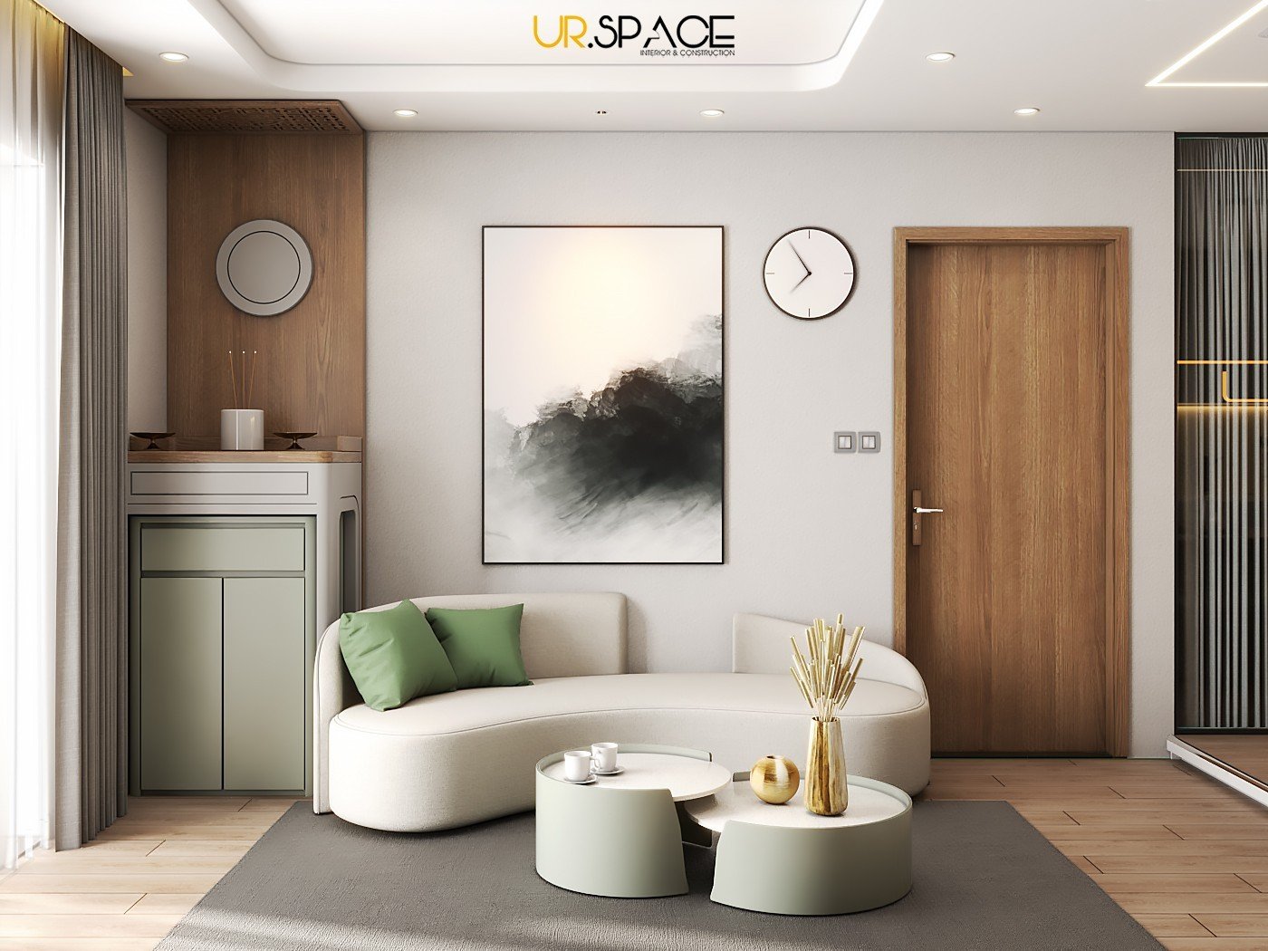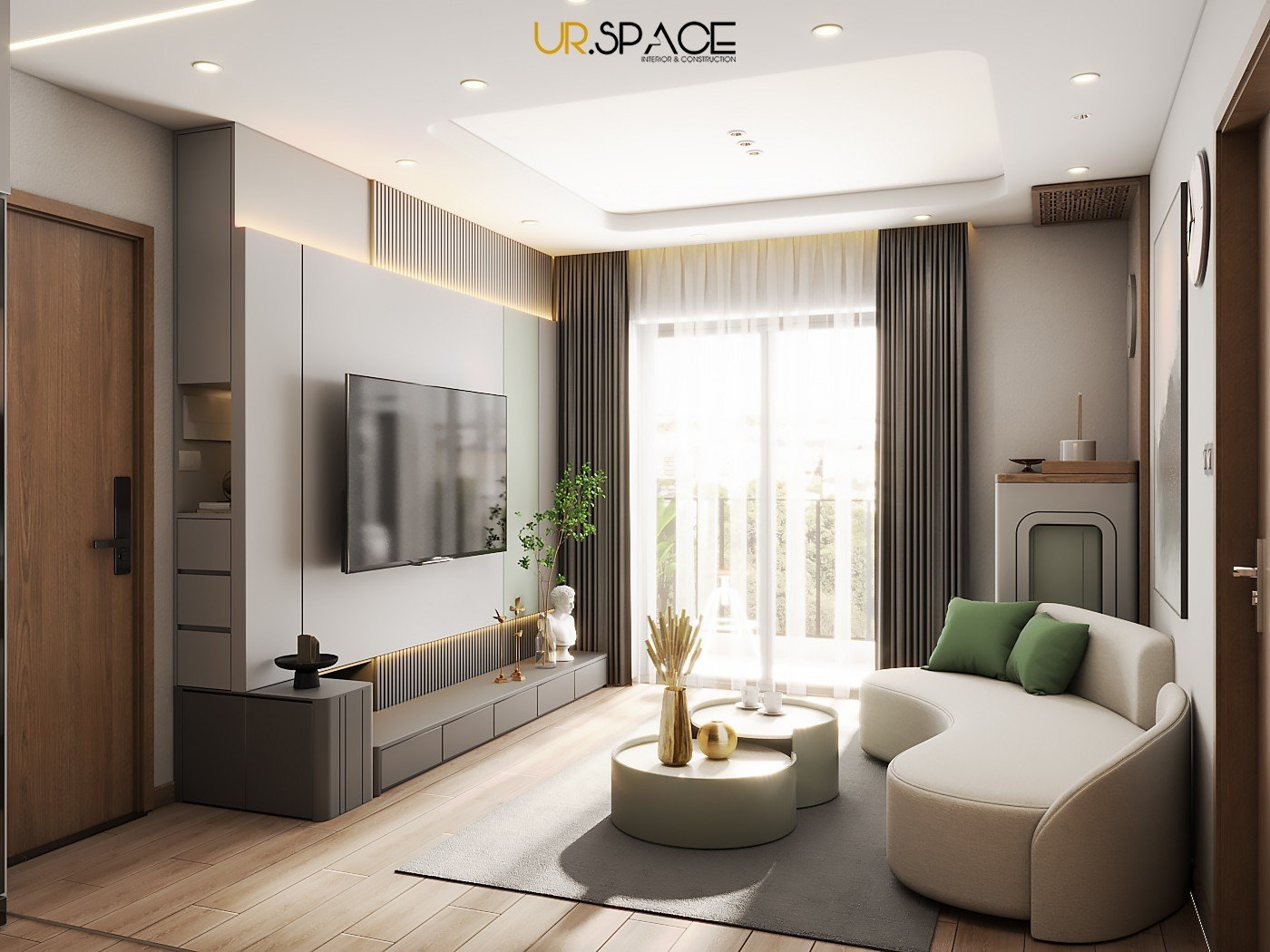 Giữa không gian sống đô thị ngày càng chật chội và bận rộn, căn hộ chung cư này như một làn gió mát lành, được đội ngũ kiến trúc sư UR.SPACE chăm chút thiết kế và thi công với tâm huyết sâu sắc. Phong cách hiện đại tinh giản được thể hiện rõ nét qua việc lựa chọn tone màu trung tính nhẹ nhàng làm nền, hòa quyện hoàn hảo với sắc xanh tươi mát của thiên nhiên – sự kết hợp tinh tế vừa tạo nên không gian sống thanh thoát, vừa mang đậm hơi thở nghệ thuật độc đáo và tràn đầy sức sống.